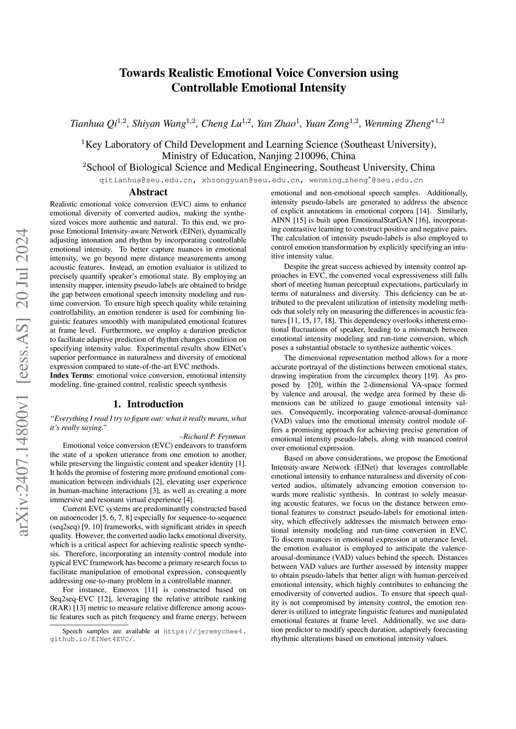 Realistic emotional voice conversion (EVC) aims to enhance emotional diversity of converted audios, making the synthesized voices more authentic and natural. To this end, we propose Emotional Intensity-aware Network (EINet), dynamically adjusting intonation and rhythm by incorporating controllable emotional intensity. To better capture nuances in emotional intensity, we go beyond mere distance measurements among acoustic features. Instead, an emotion evaluator is utilized to precisely quantify speaker's emotional state. By employing an intensity mapper, intensity pseudo-labels are obtained to bridge the gap between emotional speech intensity modeling and run-time conversion. To ensure high speech quality while retaining controllability, an emotion renderer is used for combining linguistic features smoothly with manipulated emotional features at frame level. Furthermore, we employ a duration predictor to facilitate adaptive prediction of rhythm changes condition on specifying intensity value. Experimental results show EINet's superior performance in naturalness and diversity of emotional expression compared to state-of-the-art EVC methods.