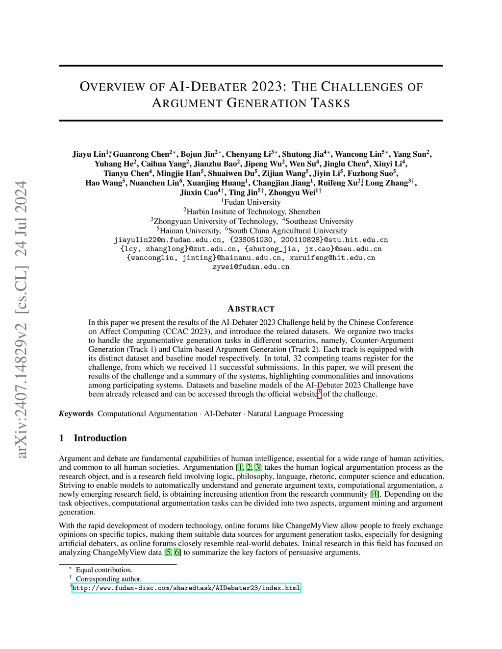 Overview of AI-Debater 2023: The Challenges of Argument Generation Tasks