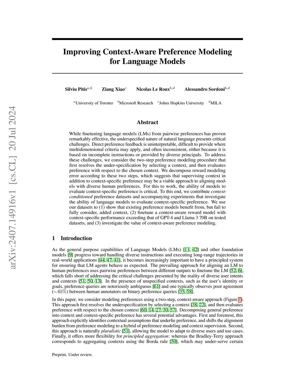 Improving Context-Aware Preference Modeling for Language Models
