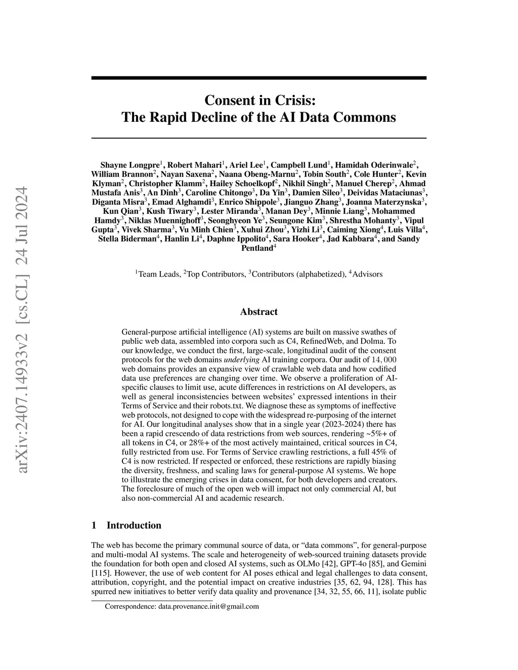 Consent in Crisis: The Rapid Decline of the AI Data Commons
