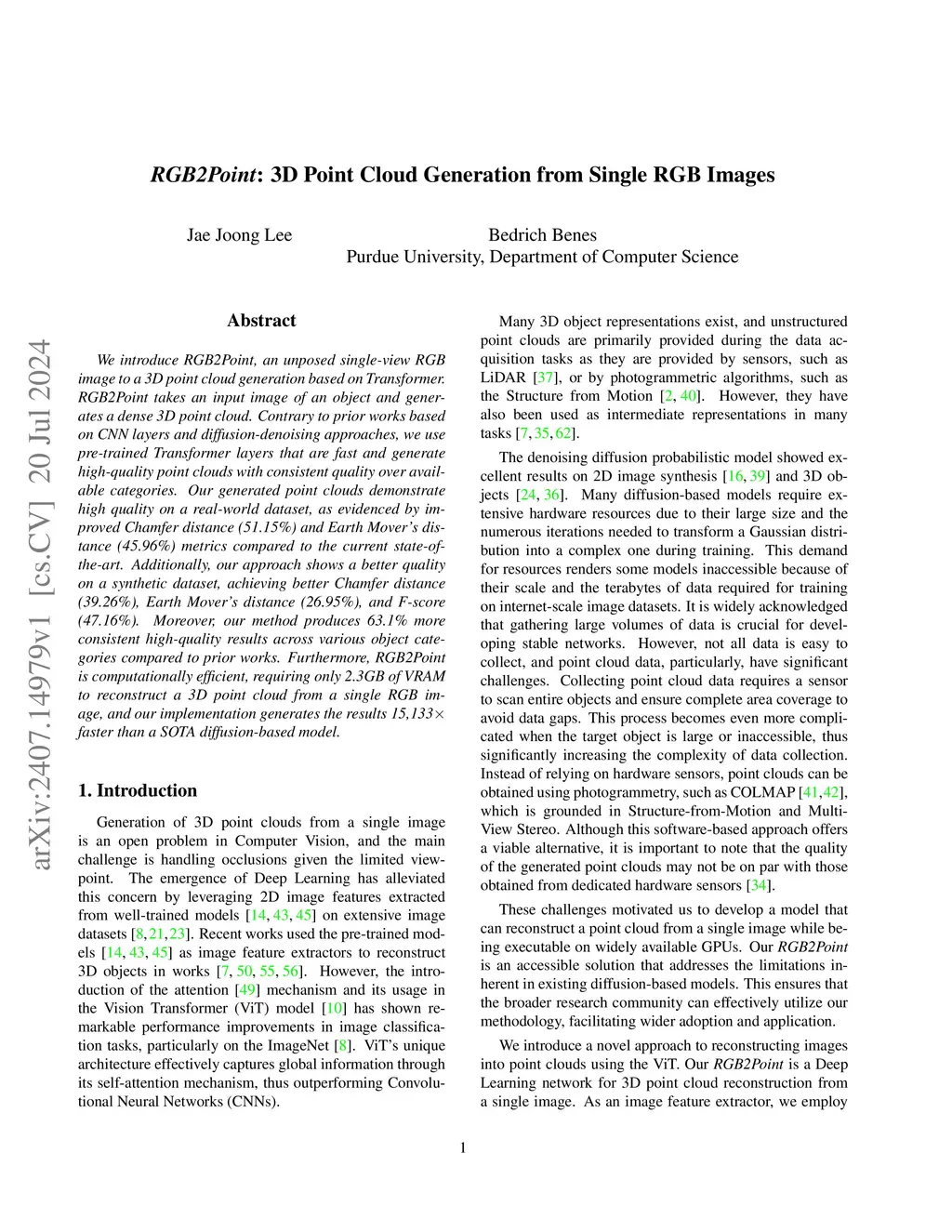 RGB2Point: 3D Point Cloud Generation from Single RGB Images