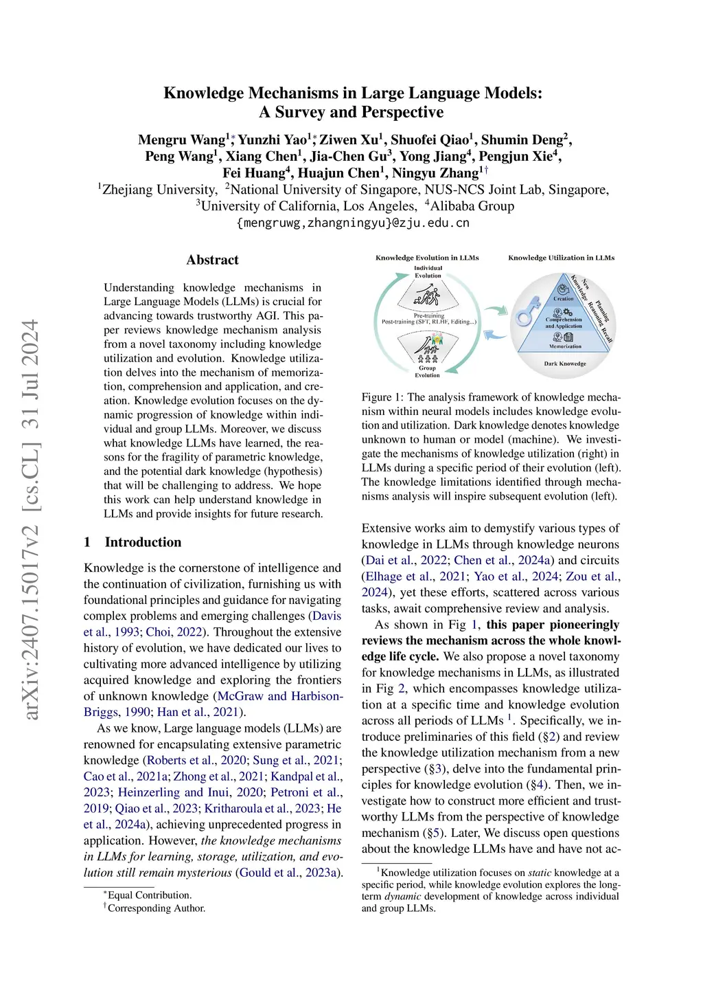 Understanding knowledge mechanisms in Large Language Models (LLMs) is crucial for advancing towards trustworthy AGI. This paper reviews knowledge mechanism analysis from a novel taxonomy including knowledge utilization and evolution. Knowledge utilization delves into the mechanism of memorization, comprehension and application, and creation. Knowledge evolution focuses on the dynamic progression of knowledge within individual and group LLMs. Moreover, we discuss what knowledge LLMs have learned, the reasons for the fragility of parametric knowledge, and the potential dark knowledge (hypothesis) that will be challenging to address. We hope this work can help understand knowledge in LLMs and provide insights for future research.