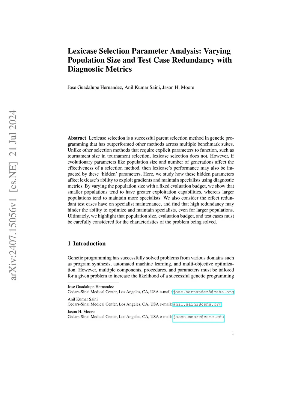 Lexicase Selection Parameter Analysis: Varying Population Size and Test