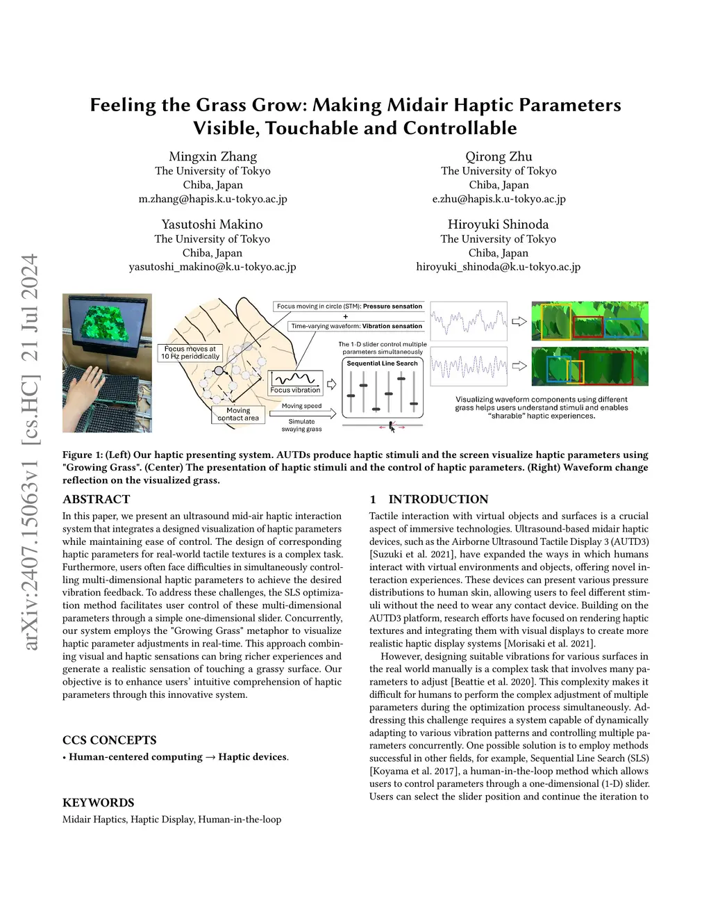 In this paper, we present an ultrasound mid-air haptic interaction system that integrates a designed visualization of haptic parameters while maintaining ease of control. The design of corresponding haptic parameters for real-world tactile textures is a complex task. Furthermore, users often face difficulties in simultaneously controlling multi-dimensional haptic parameters to achieve the desired vibration feedback. To address these challenges, the SLS optimization method facilitates user control of these multi-dimensional parameters through a simple one-dimensional slider. Concurrently, our system employs the "Growing Grass" metaphor to visualize haptic parameter adjustments in real-time. This approach combining visual and haptic sensations can bring richer experiences and generate a realistic sensation of touching a grassy surface. Our objective is to enhance users' intuitive comprehension of haptic parameters through this innovative system.