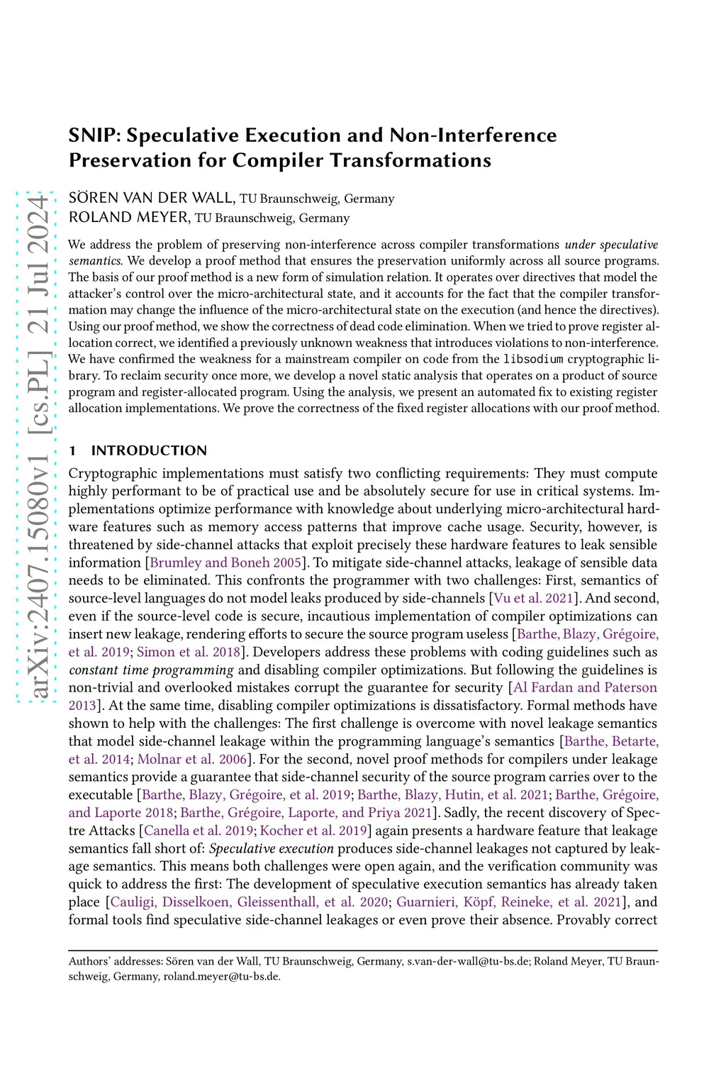 SNIP: Speculative Execution and Non-Interference Preservation for