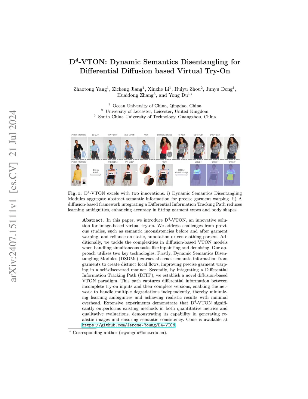 In this paper, we introduce D-VTON, an innovative solution for image-based virtual try-on. We address challenges from previous studies, such as semantic inconsistencies before and after garment warping, and reliance on static, annotation-driven clothing parsers. Additionally, we tackle the complexities in diffusion-based VTON models when handling simultaneous tasks like inpainting and denoising. Our approach utilizes two key technologies: Firstly, Dynamic Semantics Disentangling Modules (DSDMs) extract abstract semantic information from garments to create distinct local flows, improving precise garment warping in a self-discovered manner. Secondly, by integrating a Differential Information Tracking Path (DITP), we establish a novel diffusion-based VTON paradigm. This path captures differential information between incomplete try-on inputs and their complete versions, enabling the network to handle multiple degradations independently, thereby minimizing learning ambiguities and achieving realistic results with minimal overhead. Extensive experiments demonstrate that D-VTON significantly outperforms existing methods in both quantitative metrics and qualitative evaluations, demonstrating its capability in generating realistic images and ensuring semantic consistency.