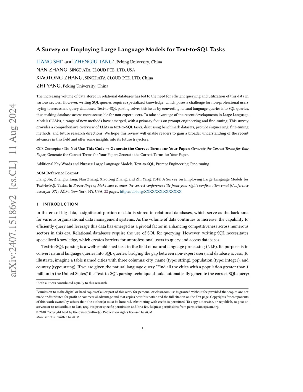 A Survey on Employing Large Language Models for Text-to-SQL Tasks