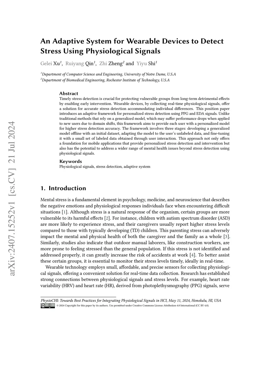 An Adaptive System for Wearable Devices to Detect Stress Using