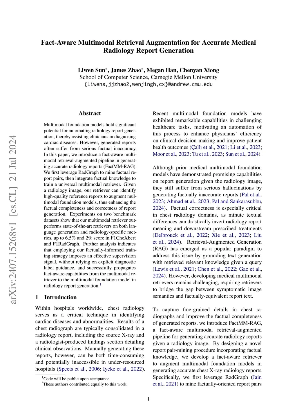 Fact-Aware Multimodal Retrieval Augmentation for Accurate Medical Radiology Report Generation