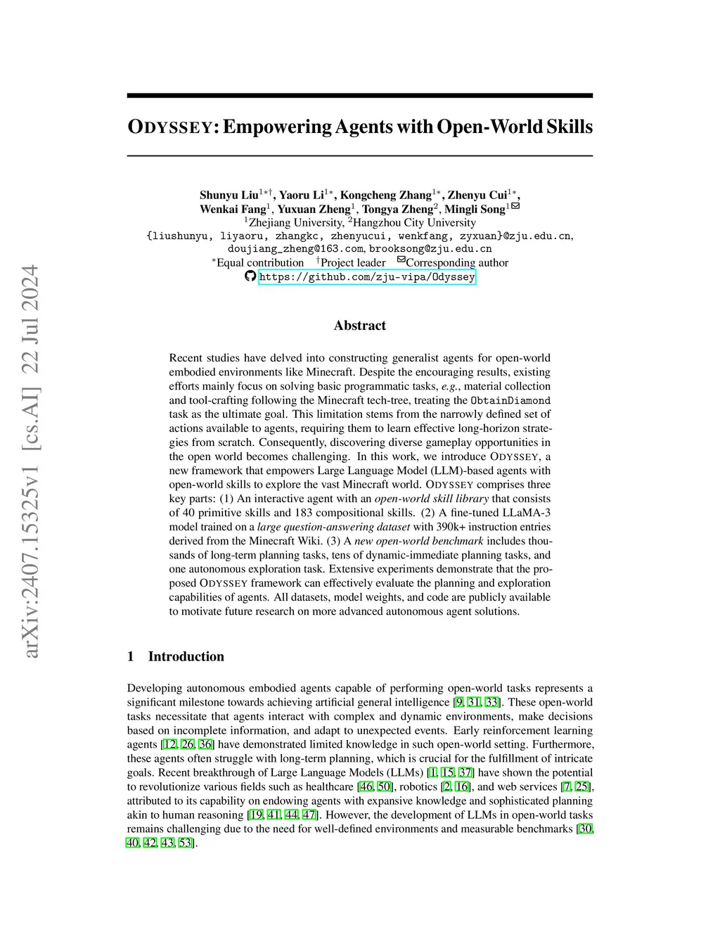 Odyssey: Empowering Minecraft Agents with Open-World Skills