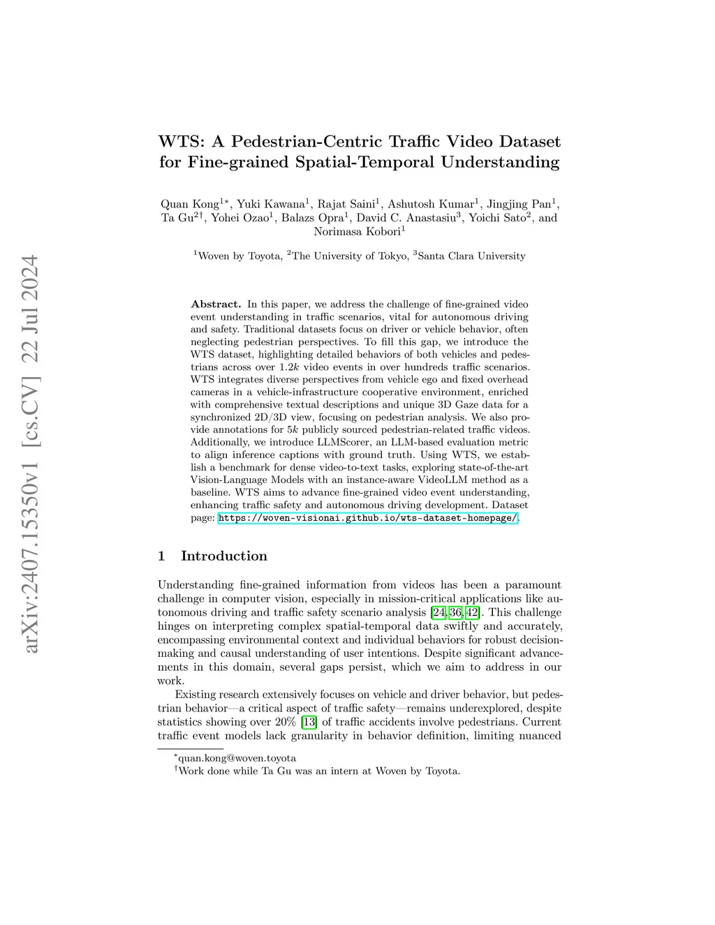 WTS: A Pedestrian-Centric Traffic Video Dataset for Fine-grained