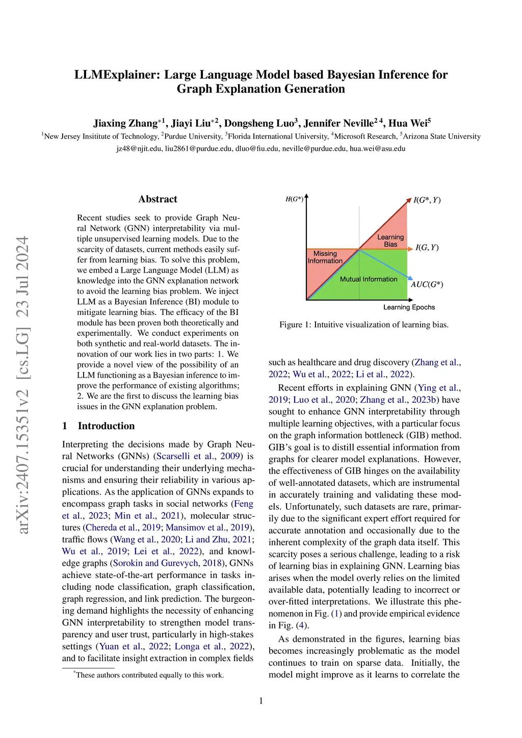 Recent studies seek to provide Graph Neural Network (GNN) interpretability via multiple unsupervised learning models. Due to the scarcity of datasets, current methods easily suffer from learning bias. To solve this problem, we embed a Large Language Model (LLM) as knowledge into the GNN explanation network to avoid the learning bias problem. We inject LLM as a Bayesian Inference (BI) module to mitigate learning bias. The efficacy of the BI module has been proven both theoretically and experimentally. We conduct experiments on both synthetic and real-world datasets. The innovation of our work lies in two parts: 1. We provide a novel view of the possibility of an LLM functioning as a Bayesian inference to improve the performance of existing algorithms; 2. We are the first to discuss the learning bias issues in the GNN explanation problem.