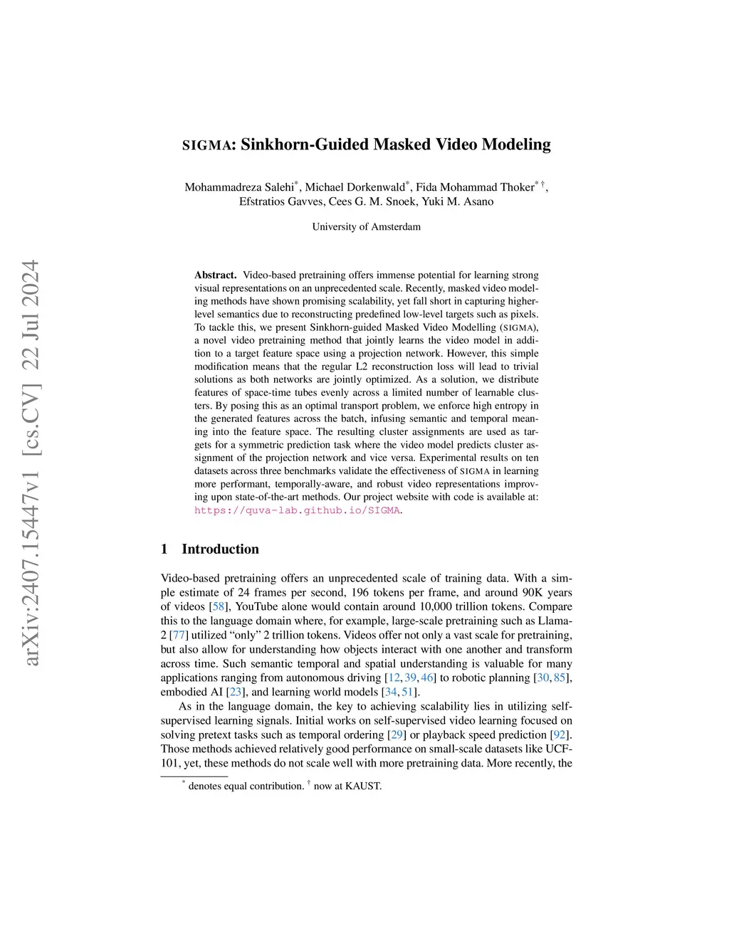 SIGMA:Sinkhorn-Guided Masked Video Modeling