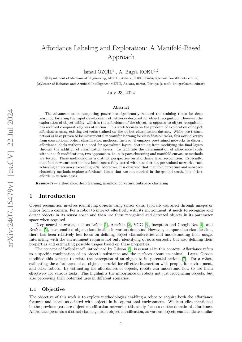 The advancement in computing power has significantly reduced the training times for deep learning, fostering the rapid development of networks designed for object recognition. However, the exploration of object utility, which is the affordance of the object, as opposed to object recognition, has received comparatively less attention. This work focuses on the problem of exploration of object affordances using existing networks trained on the object classification dataset. While pre-trained networks have proven to be instrumental in transfer learning for classification tasks, this work diverges from conventional object classification methods. Instead, it employs pre-trained networks to discern affordance labels without the need for specialized layers, abstaining from modifying the final layers through the addition of classification layers. To facilitate the determination of affordance labels without such modifications, two approaches, i.e. subspace clustering and manifold curvature methods are tested. These methods offer a distinct perspective on affordance label recognition. Especially, manifold curvature method has been successfully tested with nine distinct pre-trained networks, each achieving an accuracy exceeding 95%. Moreover, it is observed that manifold curvature and subspace clustering methods explore affordance labels that are not marked in the ground truth, but object affords in various cases.