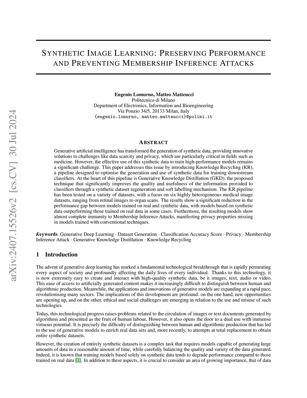 Generative artificial intelligence has transformed the generation of synthetic data, providing innovative solutions to challenges like data scarcity and privacy, which are particularly critical in fields such as medicine. However, the effective use of this synthetic data to train high-performance models remains a significant challenge. This paper addresses this issue by introducing Knowledge Recycling (KR), a pipeline designed to optimise the generation and use of synthetic data for training downstream classifiers. At the heart of this pipeline is Generative Knowledge Distillation (GKD), the proposed technique that significantly improves the quality and usefulness of the information provided to classifiers through a synthetic dataset regeneration and soft labelling mechanism. The KR pipeline has been tested on a variety of datasets, with a focus on six highly heterogeneous medical image datasets, ranging from retinal images to organ scans. The results show a significant reduction in the performance gap between models trained on real and synthetic data, with models based on synthetic data outperforming those trained on real data in some cases. Furthermore, the resulting models show almost complete immunity to Membership Inference Attacks, manifesting privacy properties missing in models trained with conventional techniques.