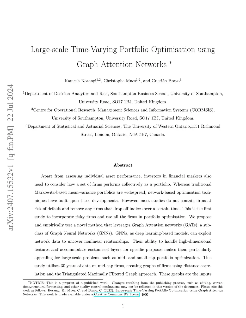 Apart from assessing individual asset performance, investors in financial markets also need to consider how a set of firms performs collectively as a portfolio. Whereas traditional Markowitz-based mean-variance portfolios are widespread, network-based optimisation techniques offer a more flexible tool to capture complex interdependencies between asset values. However, most of the existing studies do not contain firms at risk of default and remove any firms that drop off indices over a certain time. This is the first study to also incorporate such firms in portfolio optimisation on a large scale. We propose and empirically test a novel method that leverages Graph Attention networks (GATs), a subclass of Graph Neural Networks (GNNs). GNNs, as deep learning-based models, can exploit network data to uncover nonlinear relationships. Their ability to handle high-dimensional data and accommodate customised layers for specific purposes makes them appealing for large-scale problems such as mid- and small-cap portfolio optimisation. This study utilises 30 years of data on mid-cap firms, creating graphs of firms using distance correlation and the Triangulated Maximally Filtered Graph approach. These graphs are the inputs to a GAT model incorporating weight and allocation constraints and a loss function derived from the Sharpe ratio, thus focusing on maximising portfolio risk-adjusted returns. This new model is benchmarked against a network characteristic-based portfolio, a mean variance-based portfolio, and an equal-weighted portfolio. The results show that the portfolio produced by the GAT-based model outperforms all benchmarks and is consistently superior to other strategies over a long period, while also being informative of market dynamics.