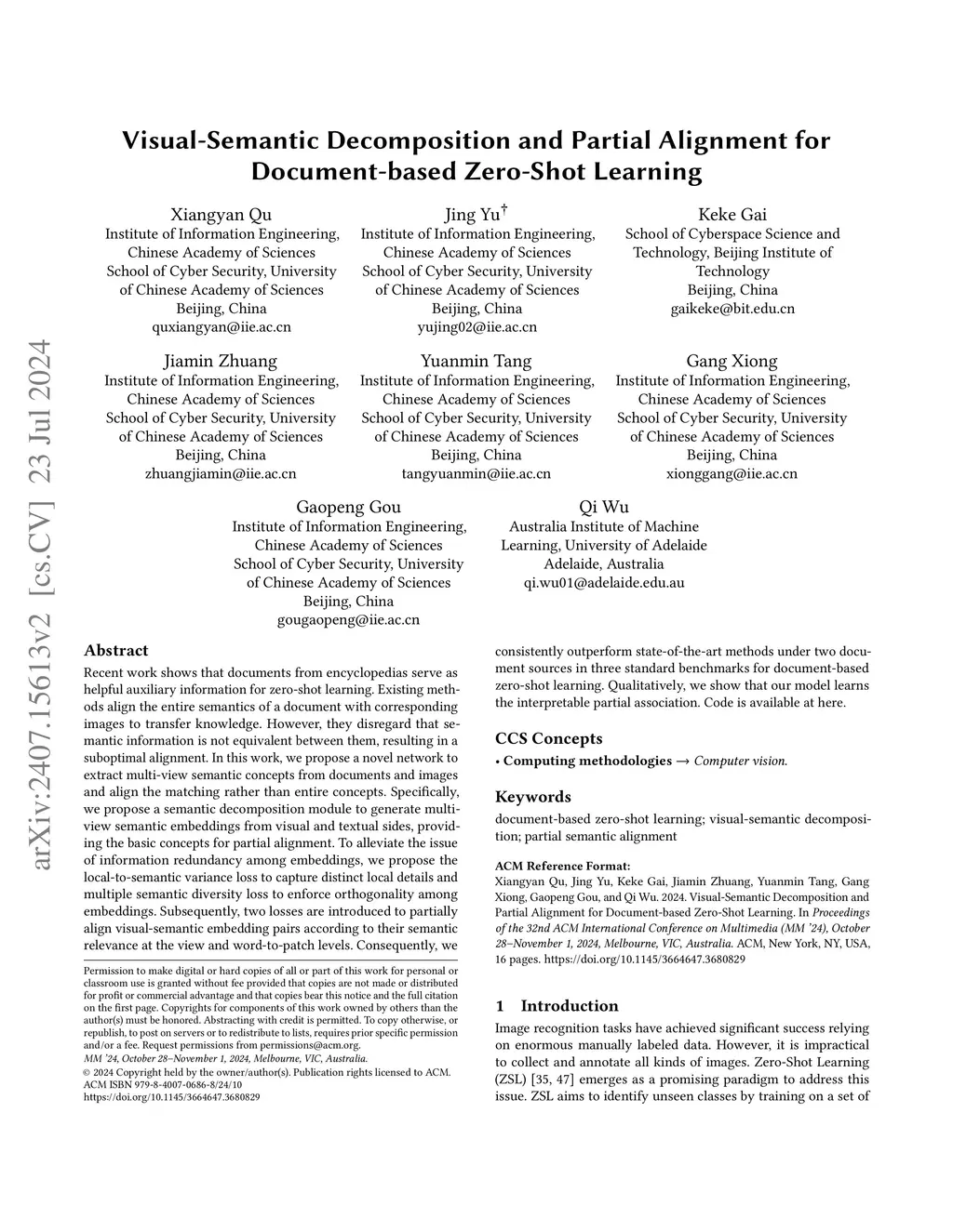 Visual-Semantic Decomposition and Partial Alignment for Document-based
