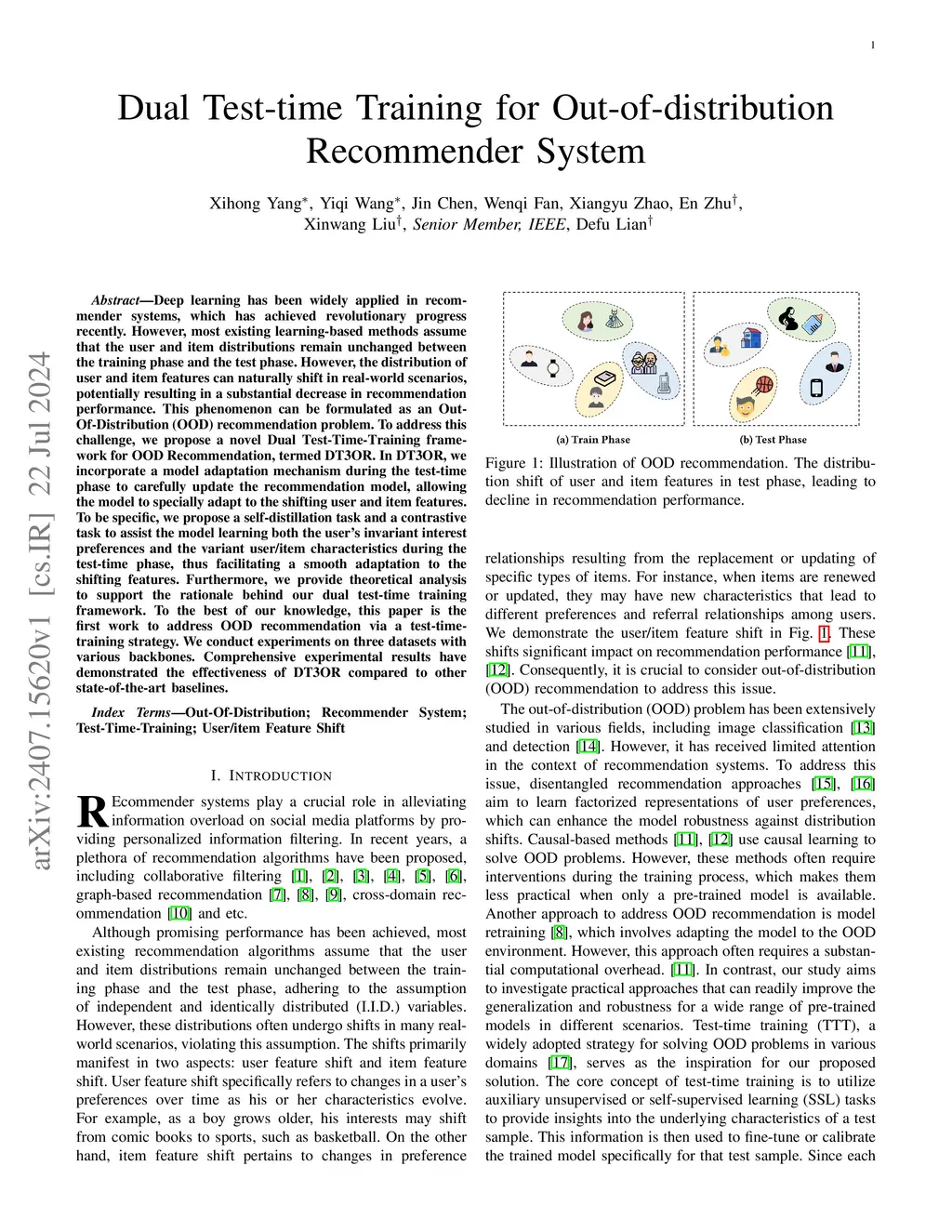 Dual Test-time Training for Out-of-distribution Recommender System