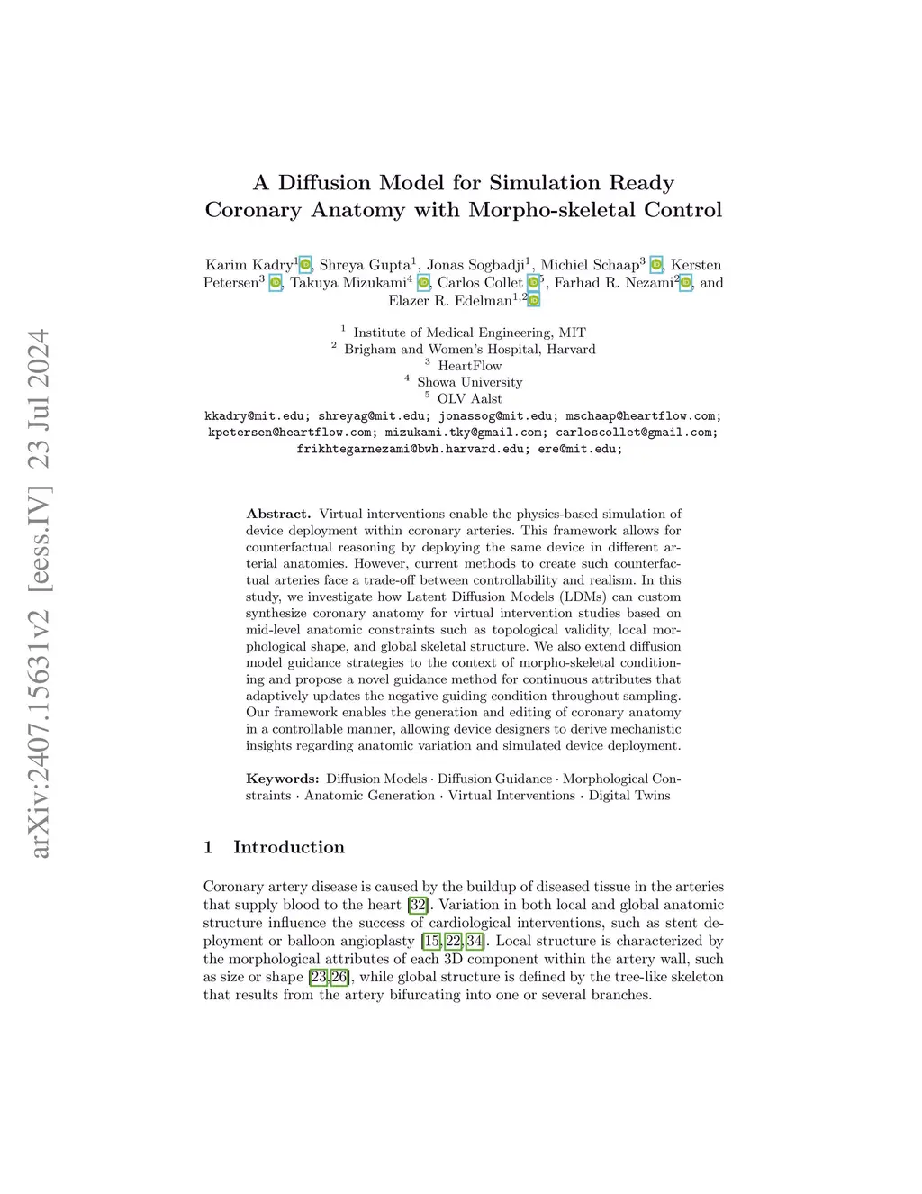 Virtual interventions enable the physics-based simulation of device deployment within coronary arteries. This framework allows for counterfactual reasoning by deploying the same device in different arterial anatomies. However, current methods to create such counterfactual arteries face a trade-off between controllability and realism. In this study, we investigate how Latent Diffusion Models (LDMs) can custom synthesize coronary anatomy for virtual intervention studies based on mid-level anatomic constraints such as topological validity, local morphological shape, and global skeletal structure. We also extend diffusion model guidance strategies to the context of morpho-skeletal conditioning and propose a novel guidance method for continuous attributes that adaptively updates the negative guiding condition throughout sampling. Our framework enables the generation and editing of coronary anatomy in a controllable manner, allowing device designers to derive mechanistic insights regarding anatomic variation and simulated device deployment.