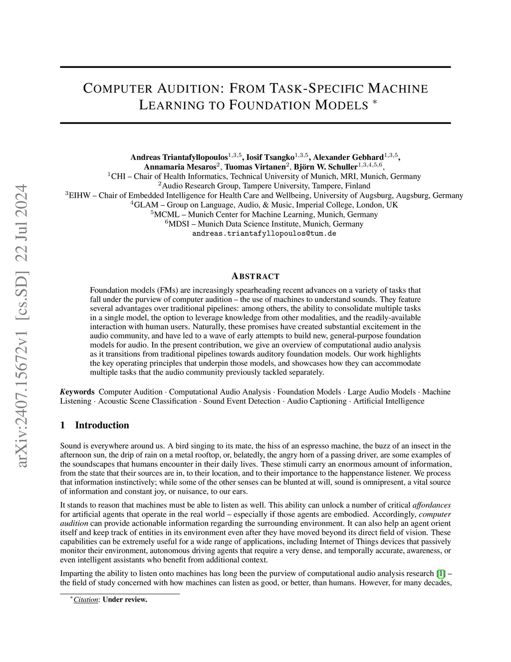 Computer Audition: From Task-Specific Machine Learning to Foundation Models