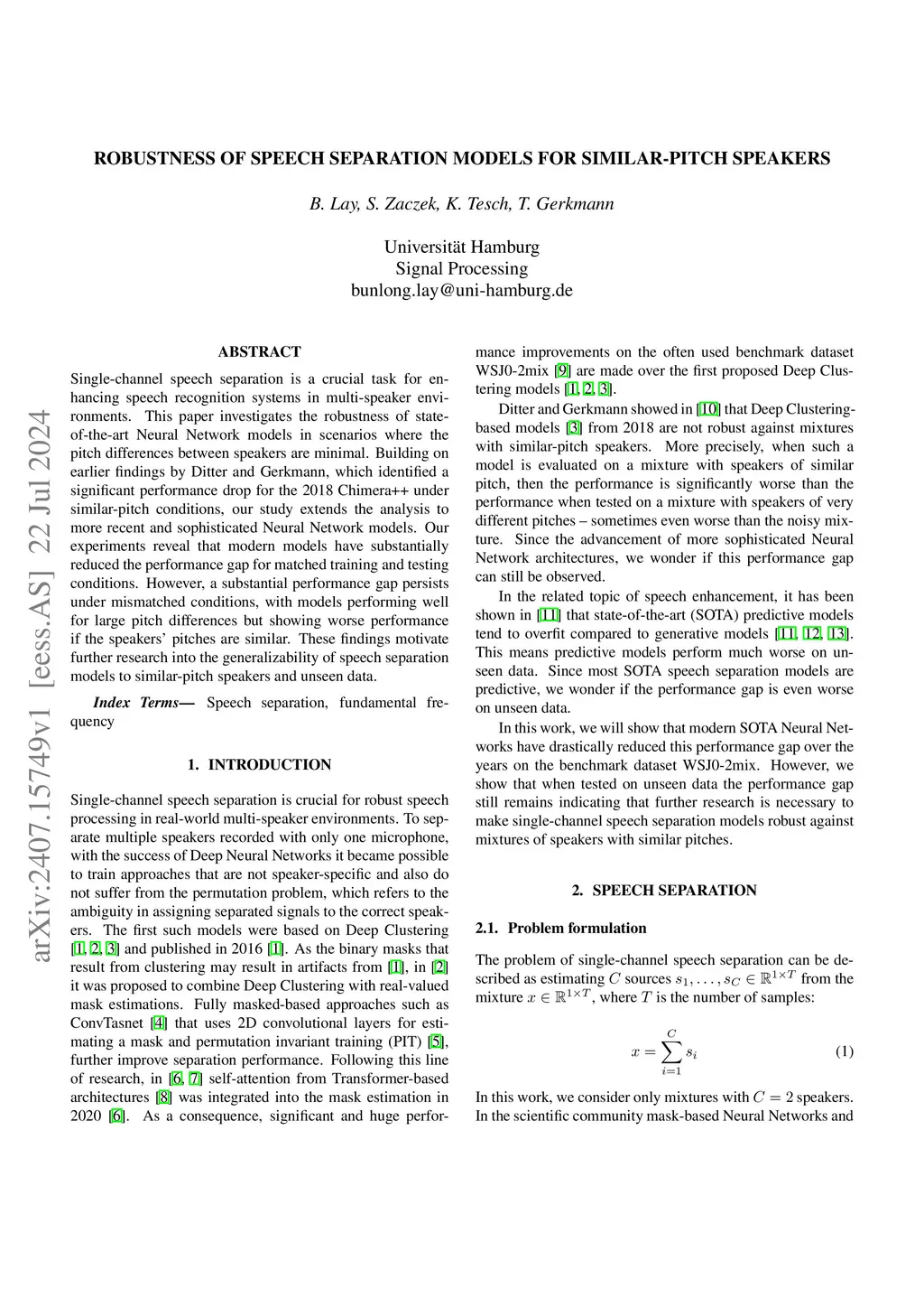 Single-channel speech separation is a crucial task for enhancing speech recognition systems in multi-speaker environments. This paper investigates the robustness of state-of-the-art Neural Network models in scenarios where the pitch differences between speakers are minimal. Building on earlier findings by Ditter and Gerkmann, which identified a significant performance drop for the 2018 Chimera++ under similar-pitch conditions, our study extends the analysis to more recent and sophisticated Neural Network models. Our experiments reveal that modern models have substantially reduced the performance gap for matched training and testing conditions. However, a substantial performance gap persists under mismatched conditions, with models performing well for large pitch differences but showing worse performance if the speakers' pitches are similar. These findings motivate further research into the generalizability of speech separation models to similar-pitch speakers and unseen data.