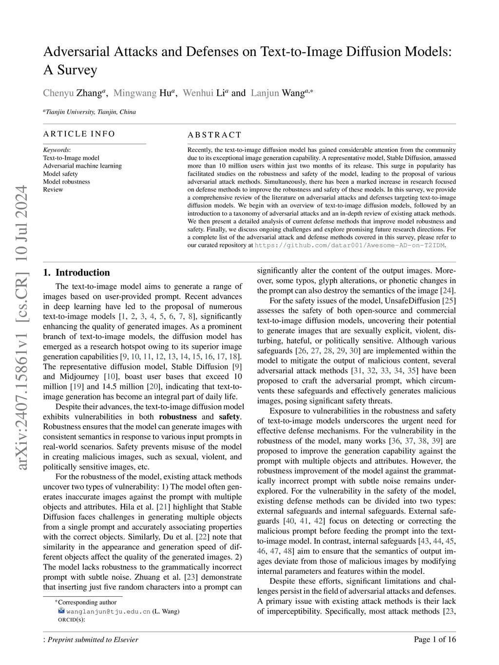 Adversarial Attacks and Defenses on Text-to-Image Diffusion Models: A