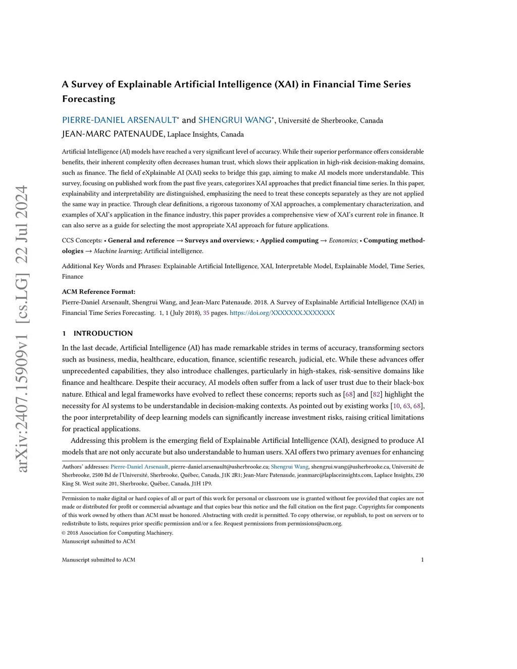 A Survey of Explainable Artificial Intelligence (XAI) in Financial Time
