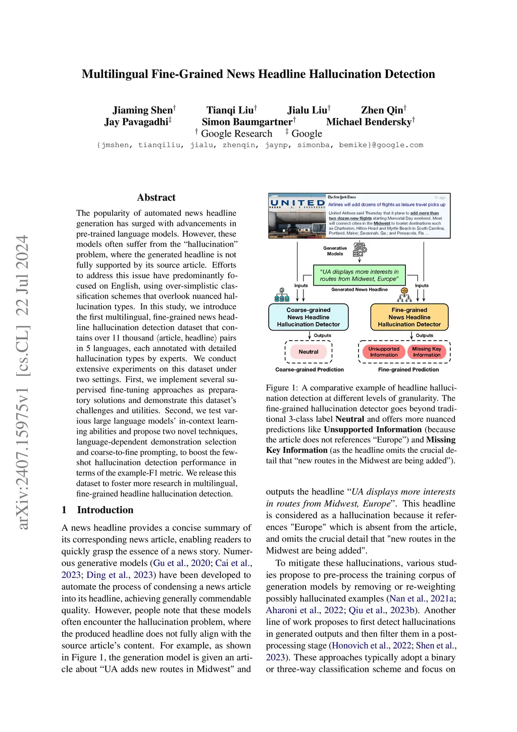 Multilingual Fine-Grained News Headline Hallucination Detection