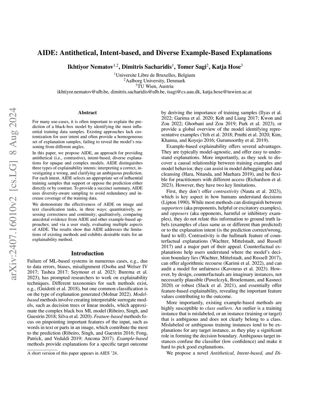 AIDE: Antithetical, Intent-based, and Diverse Example-Based Explanations