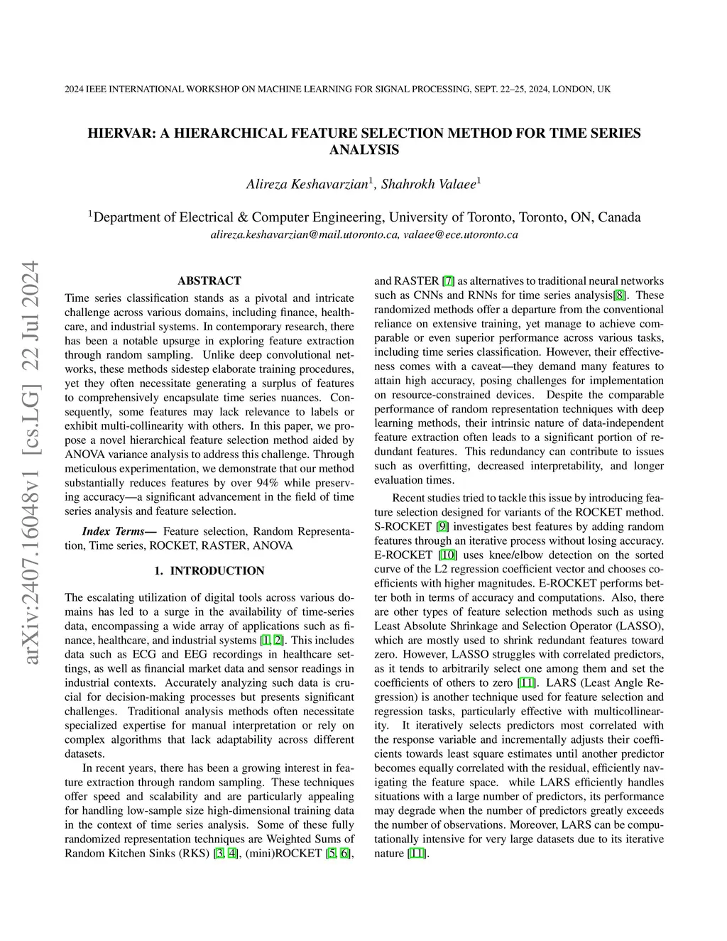 HIERVAR: A Hierarchical Feature Selection Method for Time Series