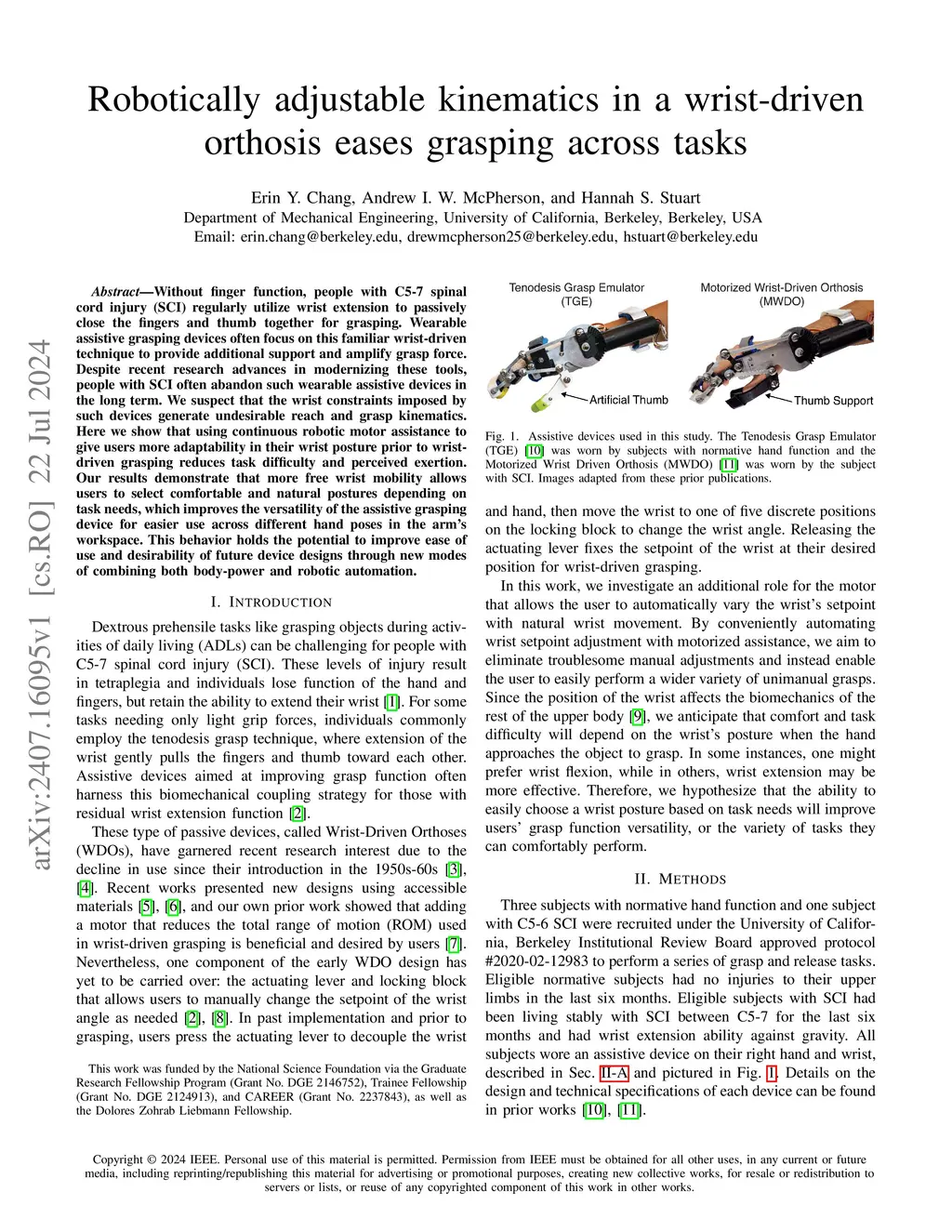 Robotically adjustable kinematics in a wrist-driven orthosis eases