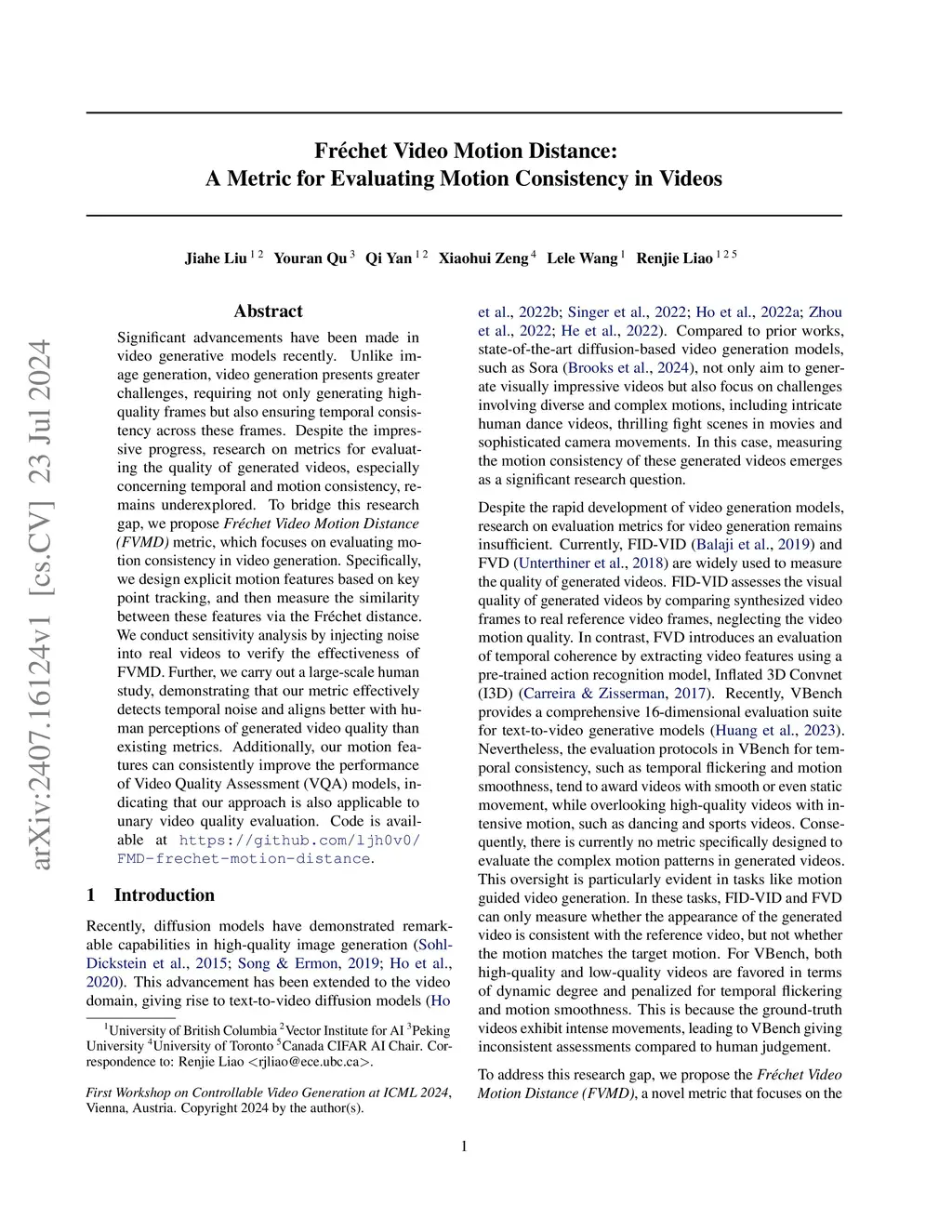 Significant advancements have been made in video generative models recently. Unlike image generation, video generation presents greater challenges, requiring not only generating high-quality frames but also ensuring temporal consistency across these frames. Despite the impressive progress, research on metrics for evaluating the quality of generated videos, especially concerning temporal and motion consistency, remains underexplored. To bridge this research gap, we propose Fr\échet Video Motion Distance (FVMD) metric, which focuses on evaluating motion consistency in video generation. Specifically, we design explicit motion features based on key point tracking, and then measure the similarity between these features via the Fr\échet distance. We conduct sensitivity analysis by injecting noise into real videos to verify the effectiveness of FVMD. Further, we carry out a large-scale human study, demonstrating that our metric effectively detects temporal noise and aligns better with human perceptions of generated video quality than existing metrics. Additionally, our motion features can consistently improve the performance of Video Quality Assessment (VQA) models, indicating that our approach is also applicable to unary video quality evaluation. Code is available at https://github.com/ljh0v0/FMD-frechet-motion-distance.