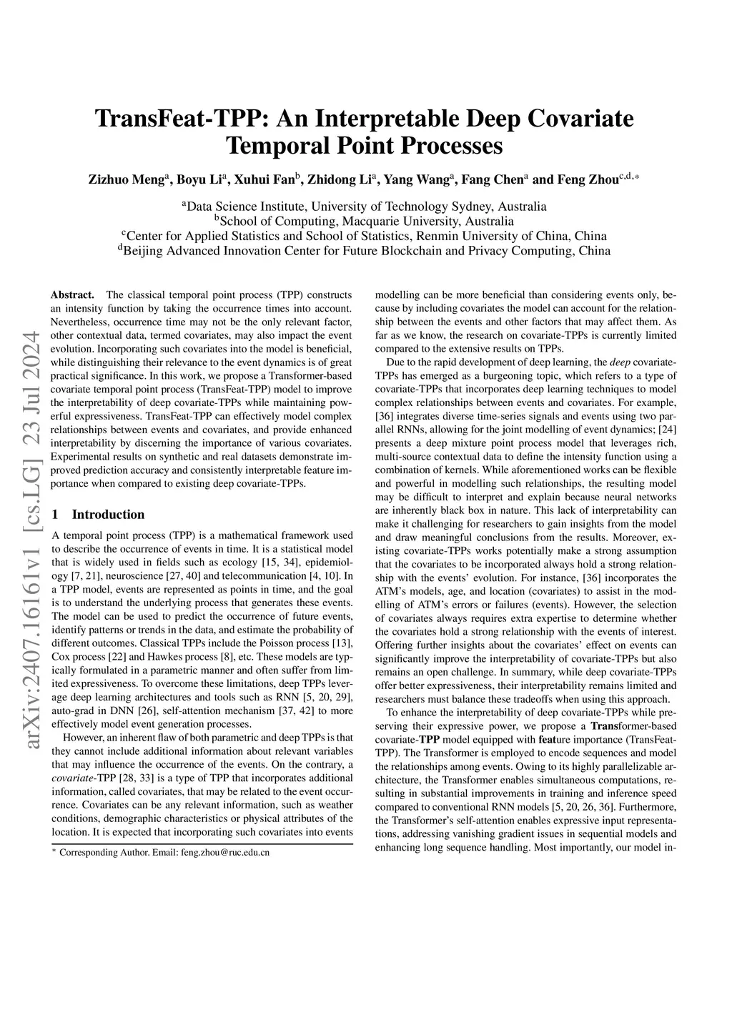 TransFeat-TPP: An Interpretable Deep Covariate Temporal Point Processes