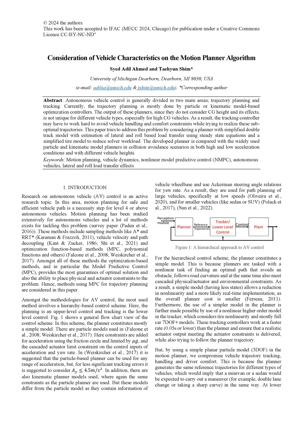 Consideration of Vehicle Characteristics on the Motion Planner Algorithm