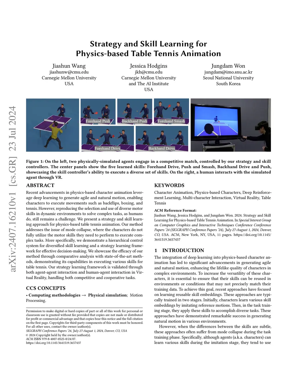 Strategy and Skill Learning for Physics-based Table Tennis Animation