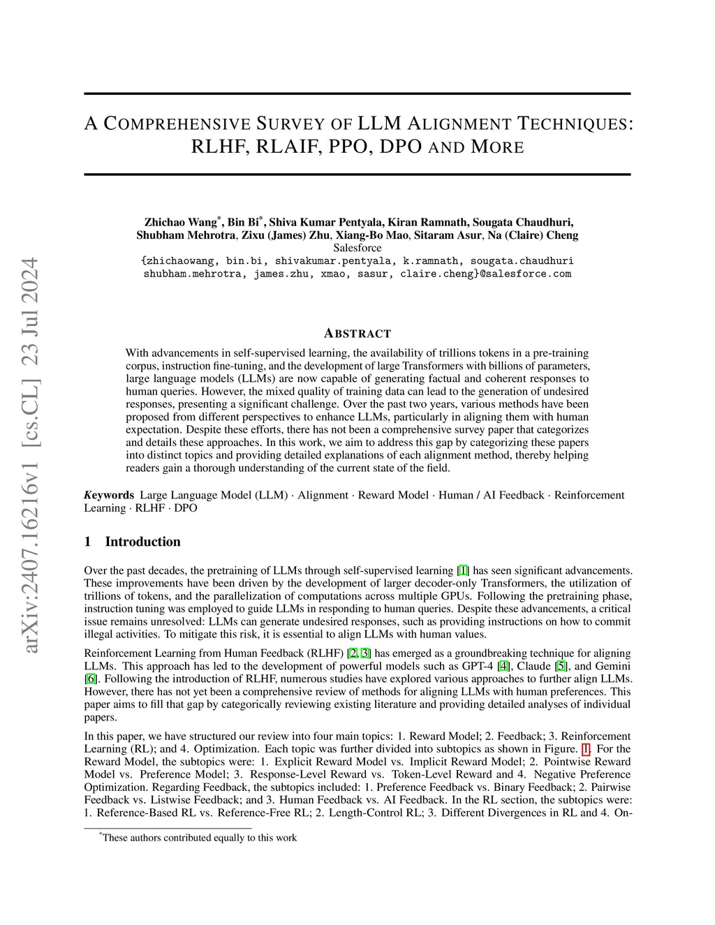 A Comprehensive Survey of LLM Alignment Techniques: RLHF, RLAIF, PPO,