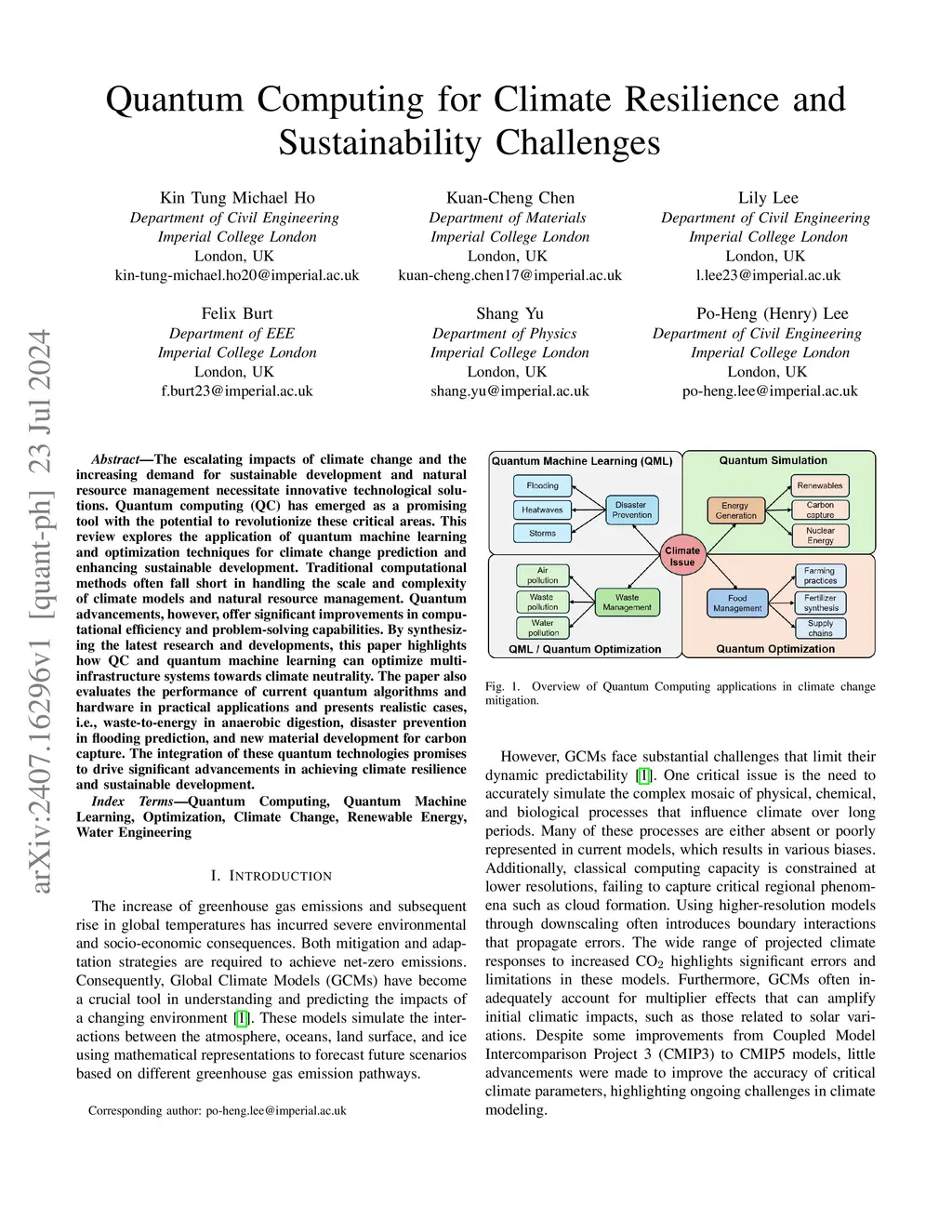 The escalating impacts of climate change and the increasing demand for sustainable development and natural resource management necessitate innovative technological solutions. Quantum computing (QC) has emerged as a promising tool with the potential to revolutionize these critical areas. This review explores the application of quantum machine learning and optimization techniques for climate change prediction and enhancing sustainable development. Traditional computational methods often fall short in handling the scale and complexity of climate models and natural resource management. Quantum advancements, however, offer significant improvements in computational efficiency and problem-solving capabilities. By synthesizing the latest research and developments, this paper highlights how QC and quantum machine learning can optimize multi-infrastructure systems towards climate neutrality. The paper also evaluates the performance of current quantum algorithms and hardware in practical applications and presents realistic cases, i.e., waste-to-energy in anaerobic digestion, disaster prevention in flooding prediction, and new material development for carbon capture. The integration of these quantum technologies promises to drive significant advancements in achieving climate resilience and sustainable development.
