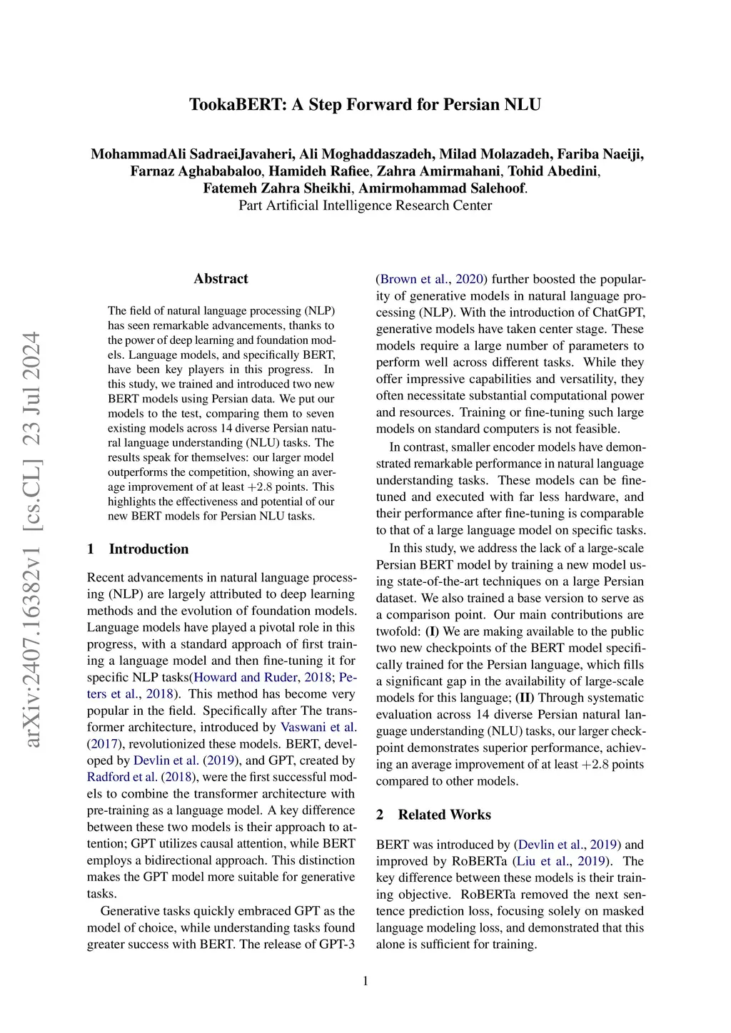 The field of natural language processing (NLP) has seen remarkable advancements, thanks to the power of deep learning and foundation models. Language models, and specifically BERT, have been key players in this progress. In this study, we trained and introduced two new BERT models using Persian data. We put our models to the test, comparing them to seven existing models across 14 diverse Persian natural language understanding (NLU) tasks. The results speak for themselves: our larger model outperforms the competition, showing an average improvement of at least +2.8 points. This highlights the effectiveness and potential of our new BERT models for Persian NLU tasks.