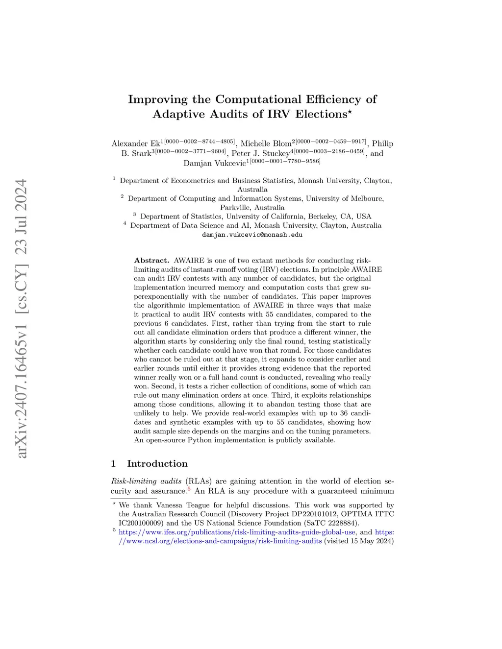 Improving the Computational Efficiency of Adaptive Audits of IRV