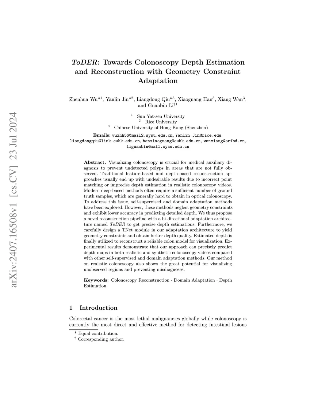 ToDER: Towards Colonoscopy Depth Estimation and Reconstruction with