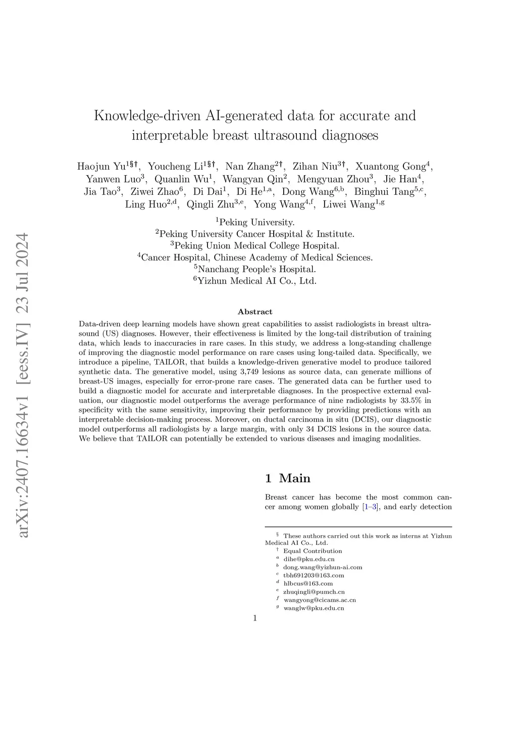 Knowledge-driven AI-generated data for accurate and interpretable breast