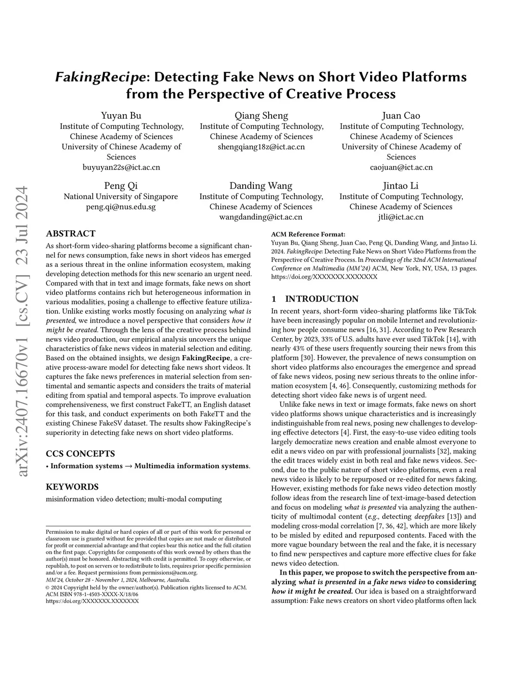 FakingRecipe: Detecting Fake News on Short Video Platforms from the