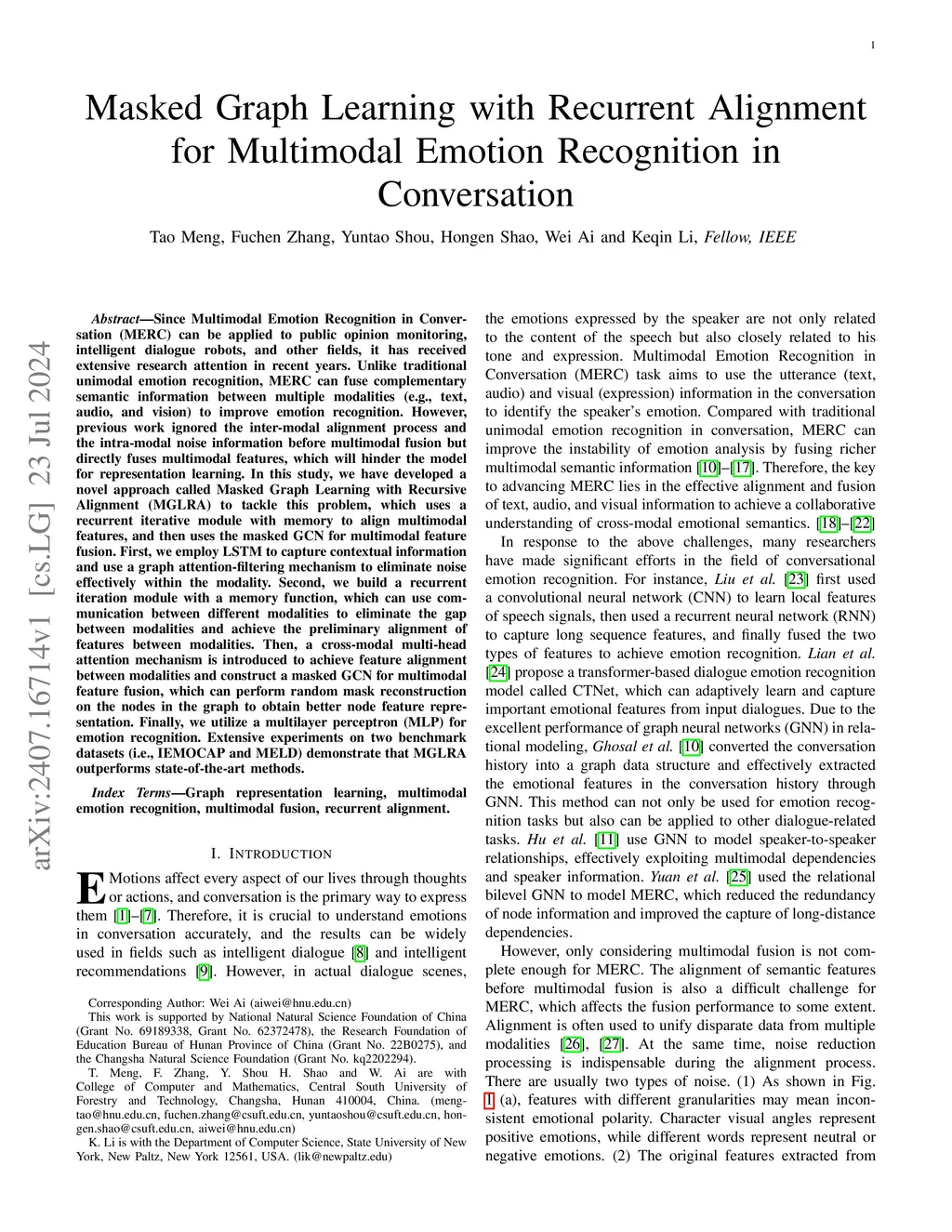 Masked Graph Learning with Recurrent Alignment for Multimodal Emotion