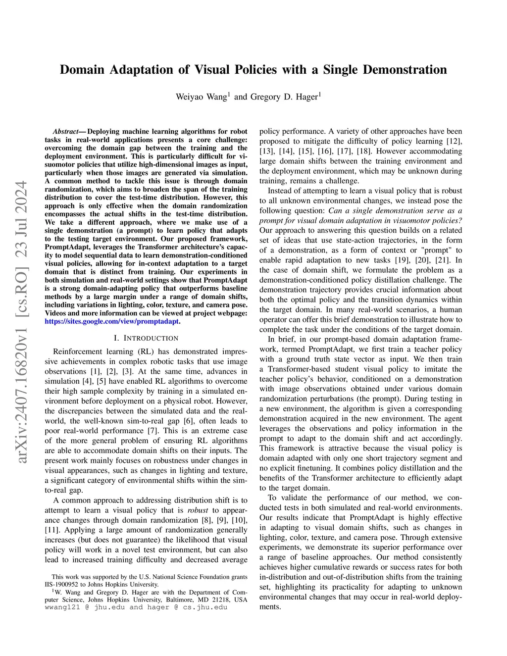 Domain Adaptation of Visual Policies with a Single Demonstration