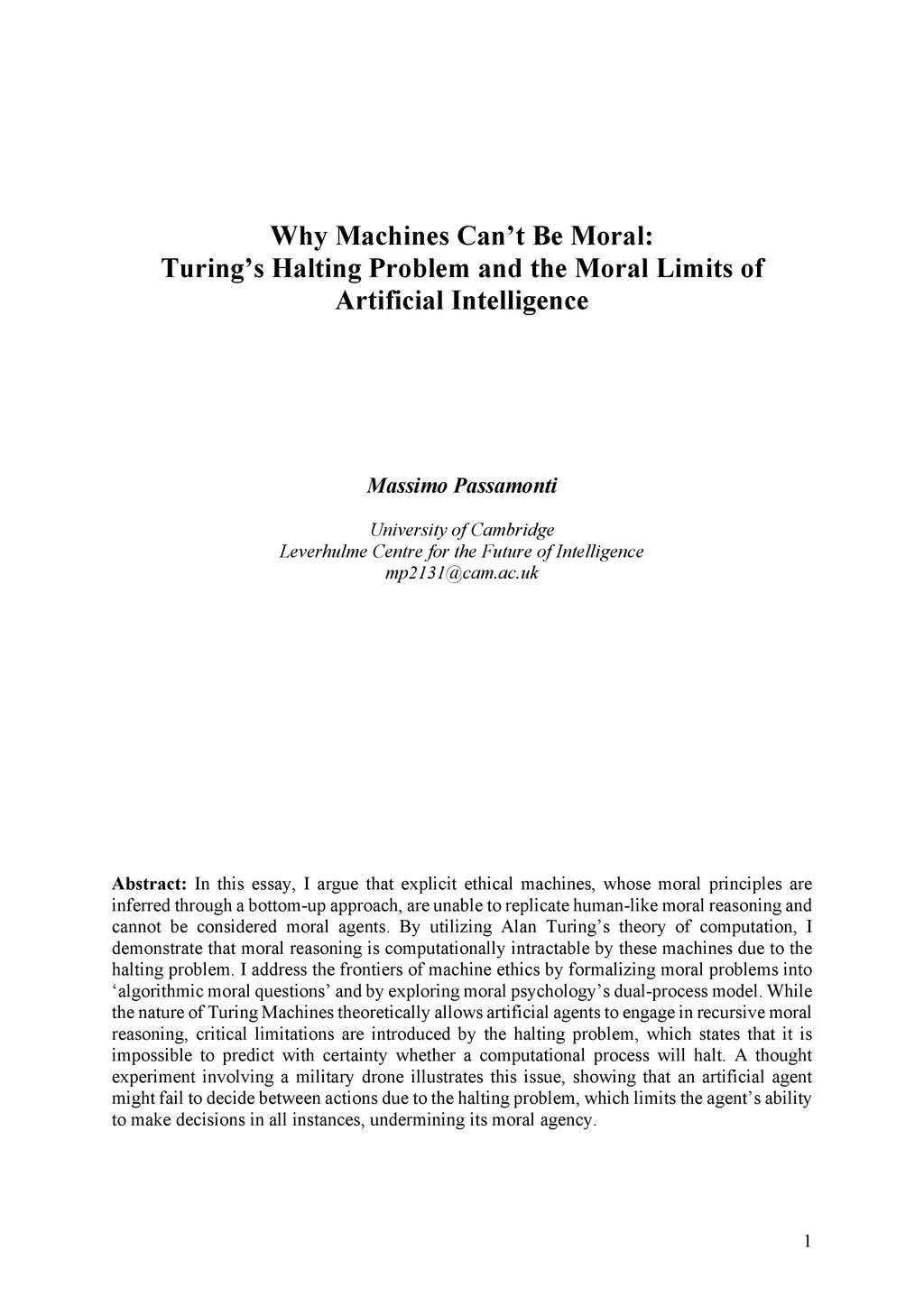Why Machines Can't Be Moral: Turing's Halting Problem and the Moral