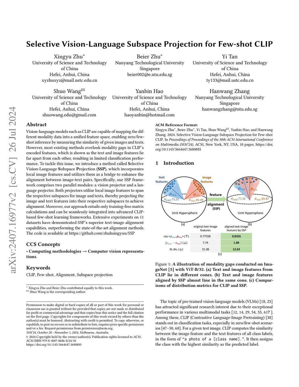 Selective Vision-Language Subspace Projection for Few-shot CLIP
