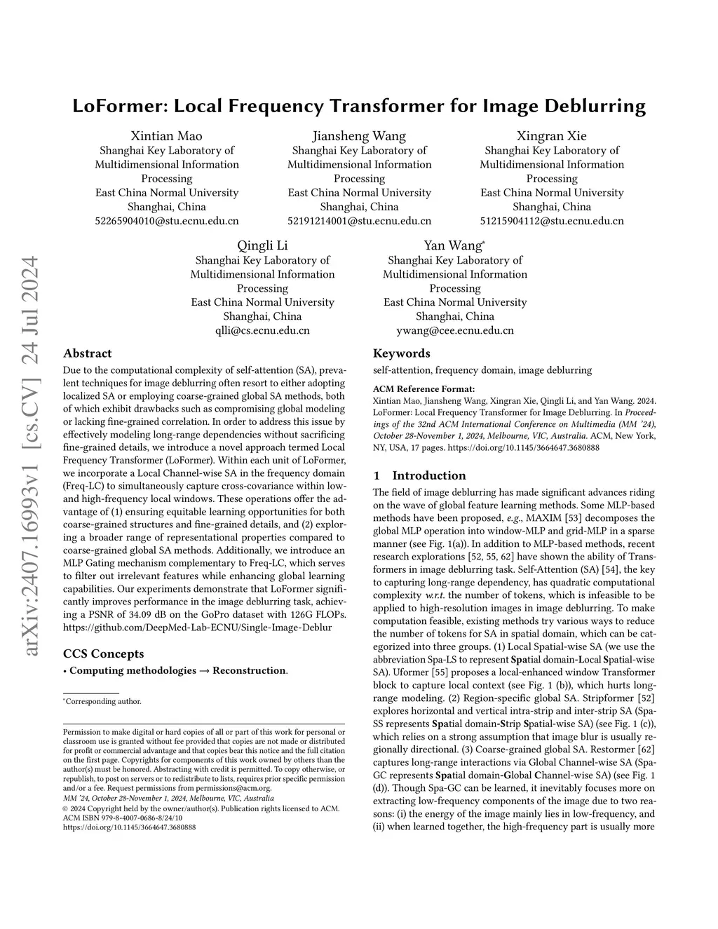 LoFormer: Local Frequency Transformer for Image Deblurring