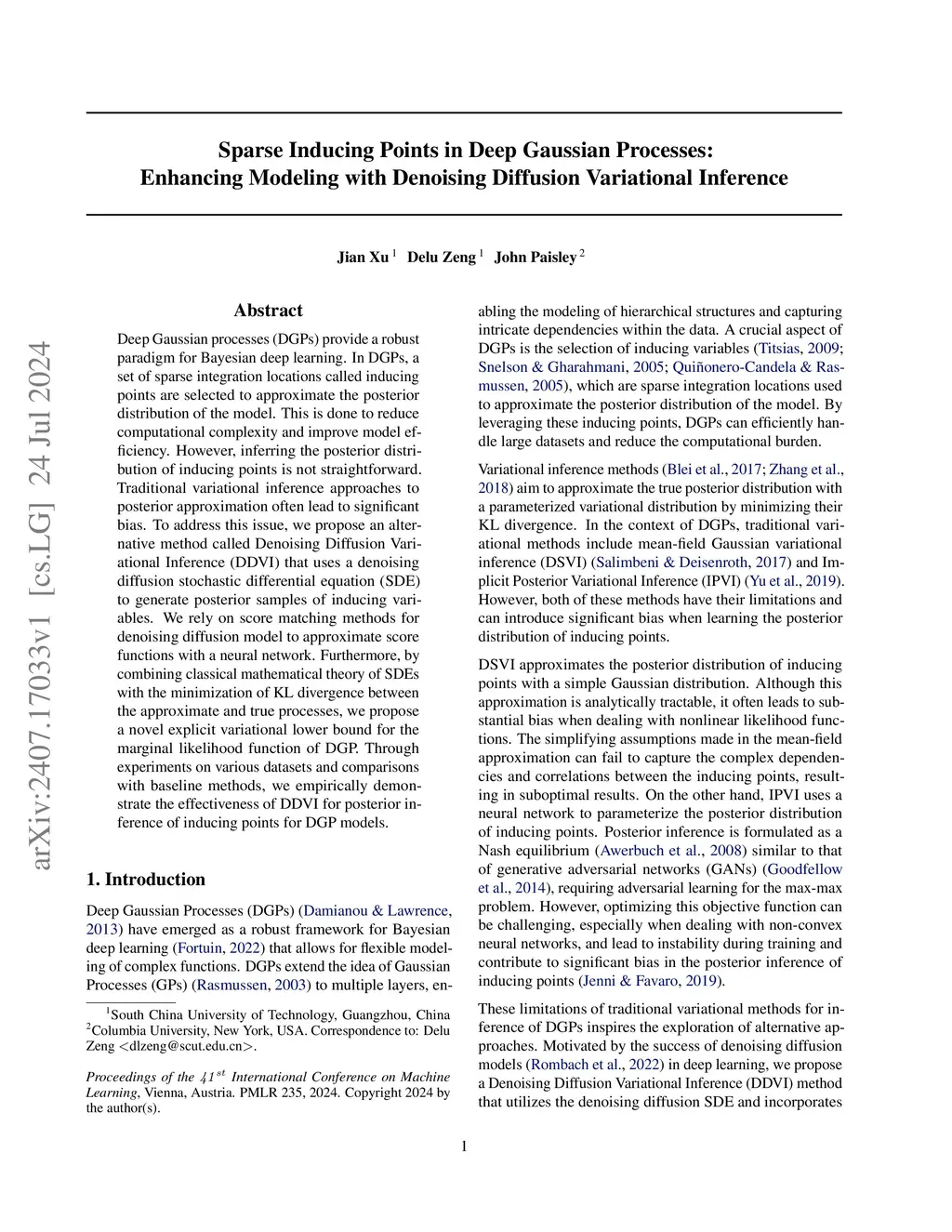 Deep Gaussian processes (DGPs) provide a robust paradigm for Bayesian deep learning. In DGPs, a set of sparse integration locations called inducing points are selected to approximate the posterior distribution of the model. This is done to reduce computational complexity and improve model efficiency. However, inferring the posterior distribution of inducing points is not straightforward. Traditional variational inference approaches to posterior approximation often lead to significant bias. To address this issue, we propose an alternative method called Denoising Diffusion Variational Inference (DDVI) that uses a denoising diffusion stochastic differential equation (SDE) to generate posterior samples of inducing variables. We rely on score matching methods for denoising diffusion model to approximate score functions with a neural network. Furthermore, by combining classical mathematical theory of SDEs with the minimization of KL divergence between the approximate and true processes, we propose a novel explicit variational lower bound for the marginal likelihood function of DGP. Through experiments on various datasets and comparisons with baseline methods, we empirically demonstrate the effectiveness of DDVI for posterior inference of inducing points for DGP models.