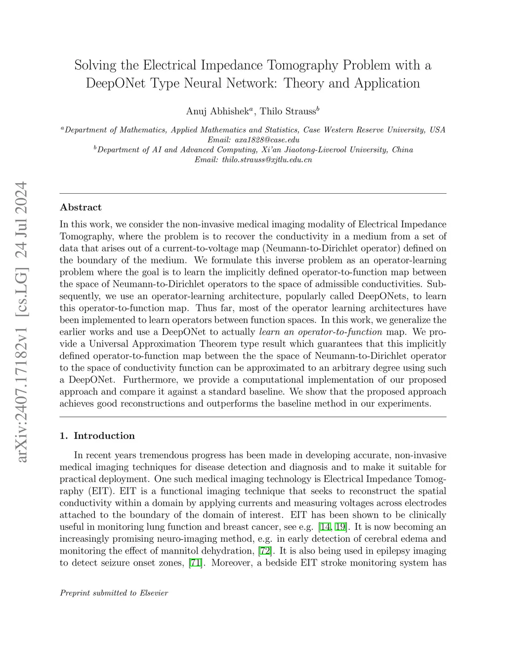 In this work, we consider the non-invasive medical imaging modality of Electrical Impedance Tomography, where the problem is to recover the conductivity in a medium from a set of data that arises out of a current-to-voltage map (Neumann-to-Dirichlet operator) defined on the boundary of the medium. We formulate this inverse problem as an operator-learning problem where the goal is to learn the implicitly defined operator-to-function map between the space of Neumann-to-Dirichlet operators to the space of admissible conductivities. Subsequently, we use an operator-learning architecture, popularly called DeepONets, to learn this operator-to-function map. Thus far, most of the operator learning architectures have been implemented to learn operators between function spaces. In this work, we generalize the earlier works and use a DeepONet to actually {learn an operator-to-function} map. We provide a Universal Approximation Theorem type result which guarantees that this implicitly defined operator-to-function map between the space of Neumann-to-Dirichlet operator to the space of conductivity function can be approximated to an arbitrary degree using such a DeepONet. Furthermore, we provide a computational implementation of our proposed approach and compare it against a standard baseline. We show that the proposed approach achieves good reconstructions and outperforms the baseline method in our experiments.