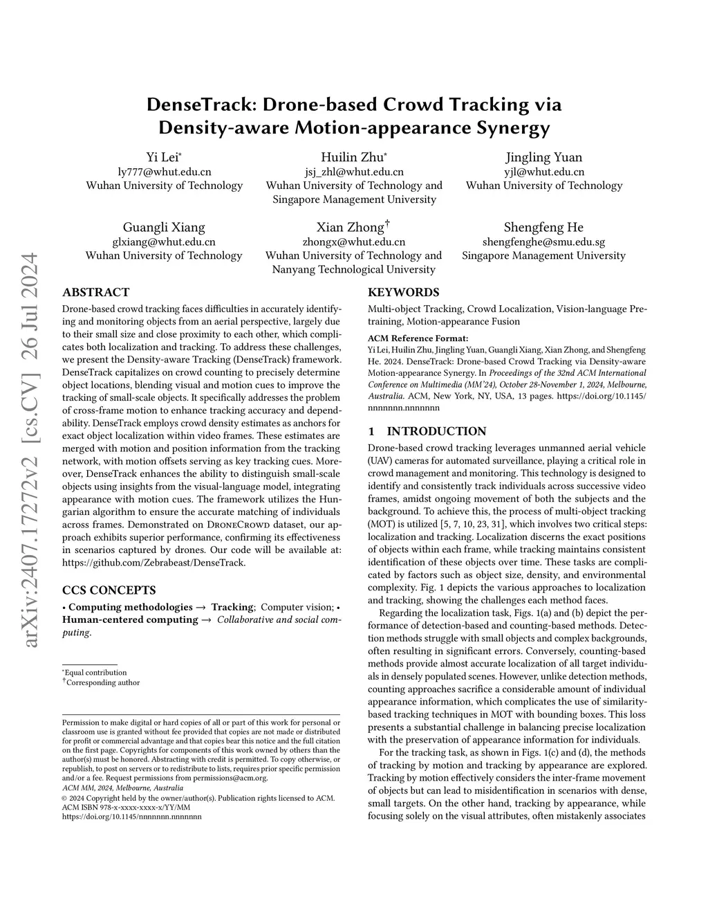 DenseTrack: Drone-based Crowd Tracking via Density-aware